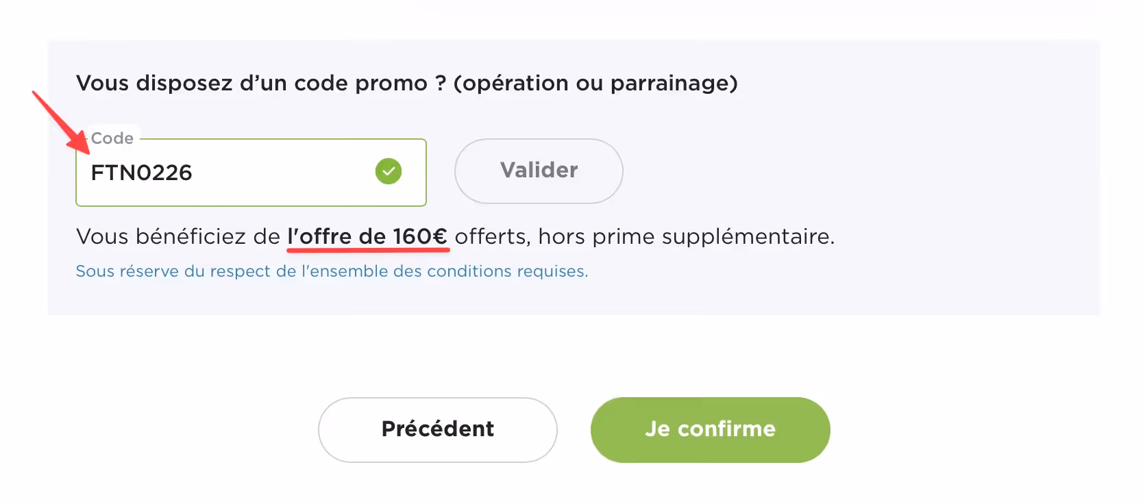 Option 1 : Offre spéciale FTN0226 (jusqu'à 250 €)