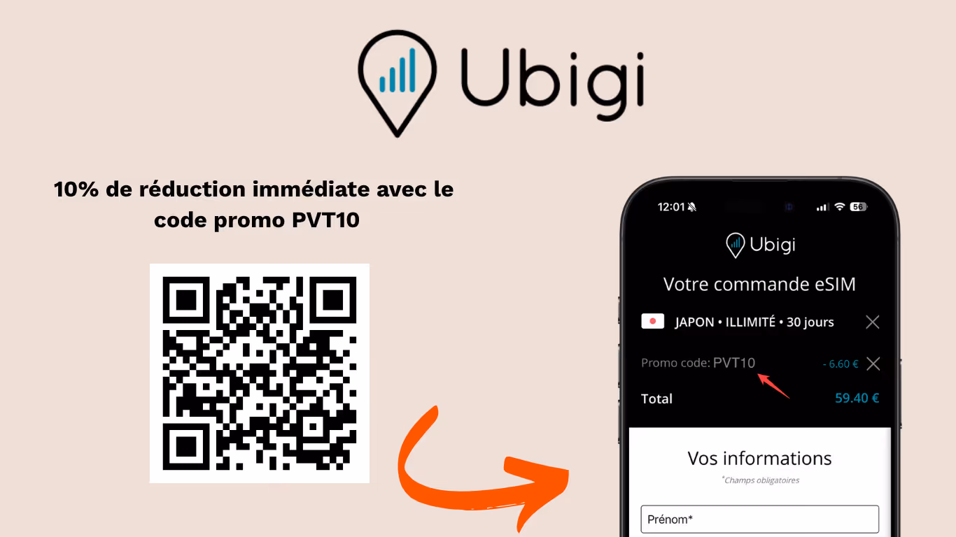 - 💰 10% de réduction avec le code PVT10 sur ton premier achat eSIM Ubigi, toutes destinations