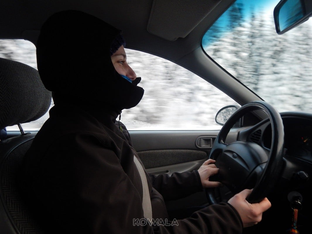 Car même si les paysages canadiens sont époustouflants, souvent, le trajet maison-travail n’est pas assez long pour que l’habitacle de la voiture se réchauffe vraiment… Si bien que vous êtes obligé de conduire avec vos moufles, bonnets et compagnie, et parfois même, de gratter à l’intérieur de la voiture puisque le givre s’y est immiscé ! Sans parler des conditions de route qui ne sont vraiment pas idéales… Recouvertes d’une couche de neige compactée méga-glissante, il faut vraiment être prudent.