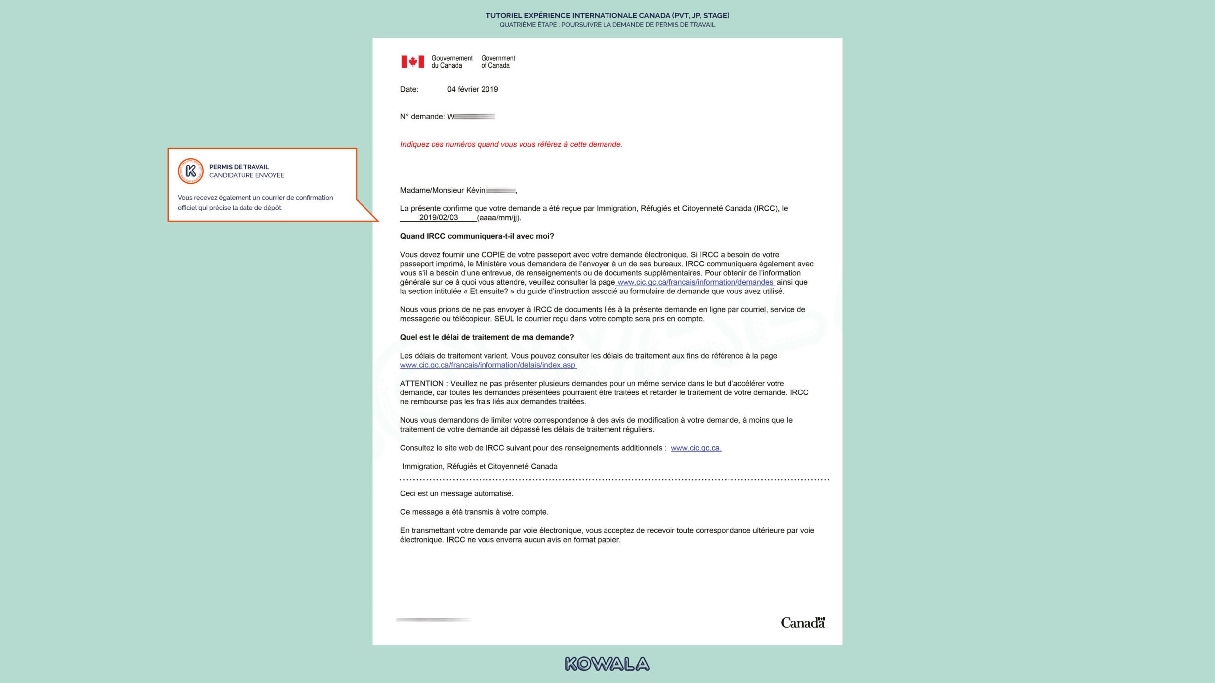 - Date d'expiration : tu dois entrer au Canada avant cette date (la LI est valide 1 an)