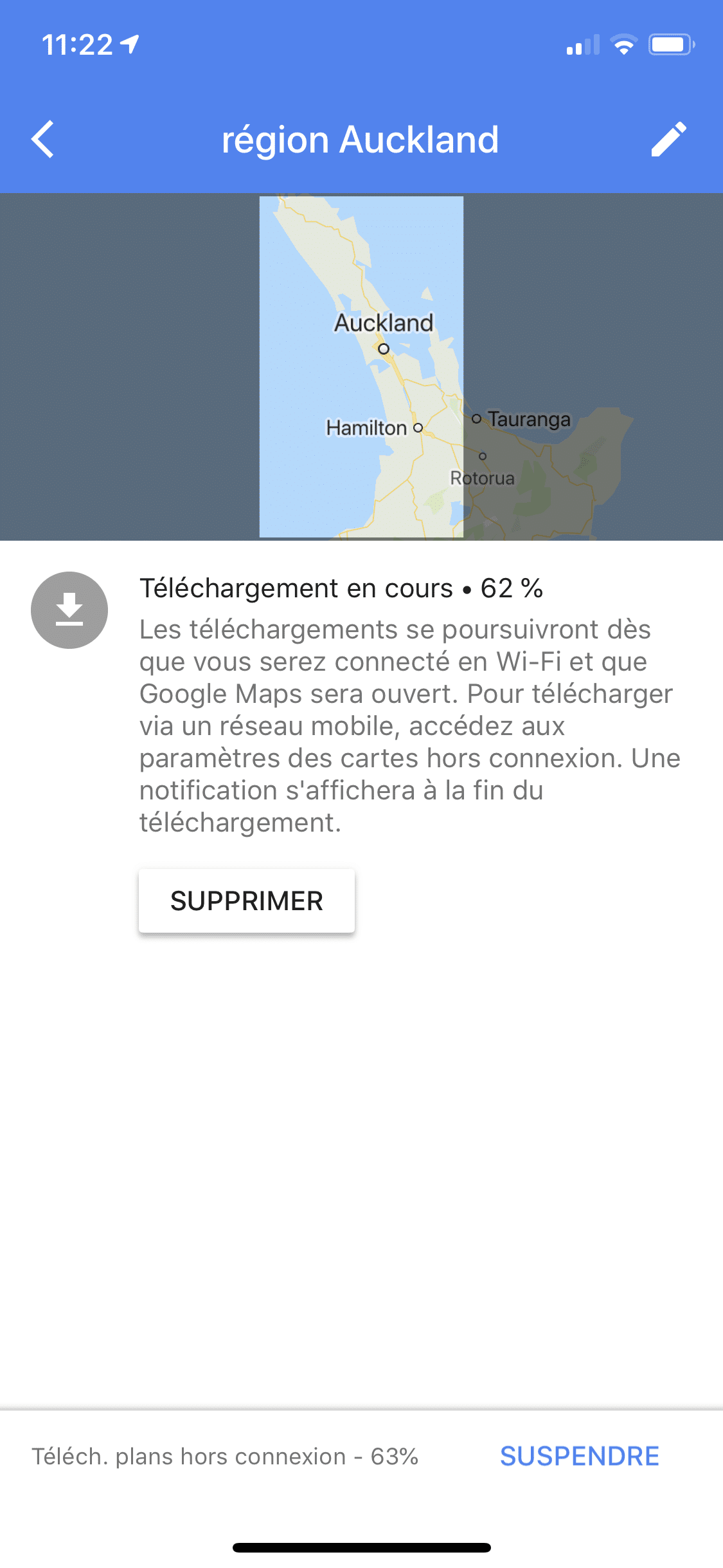 - Répétez autant de fois pour couvrir toutes les régions de votre voyage. Les cartes restent un an dans votre téléphone (à moins de les supprimer manuellement)