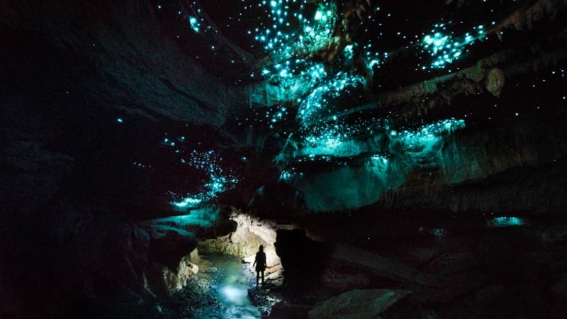 Situé à 1h de route au Sud d’Hamilton, le village de Waitomo Caves accueille chaque année plus de 500 000 visiteurs : un district où a pour l’instant été découvert plus de 300 grottes, pour la plupart réservées aux professionnels. Mais rassurez-vous, depuis les années 1900, le tourisme a aussi le droit à sa petite part de gâteau. La grande question est : qu’est-ce qui attire autant de monde dans ces grottes ? Les vers luisants ou glowworm pour les bilingues.